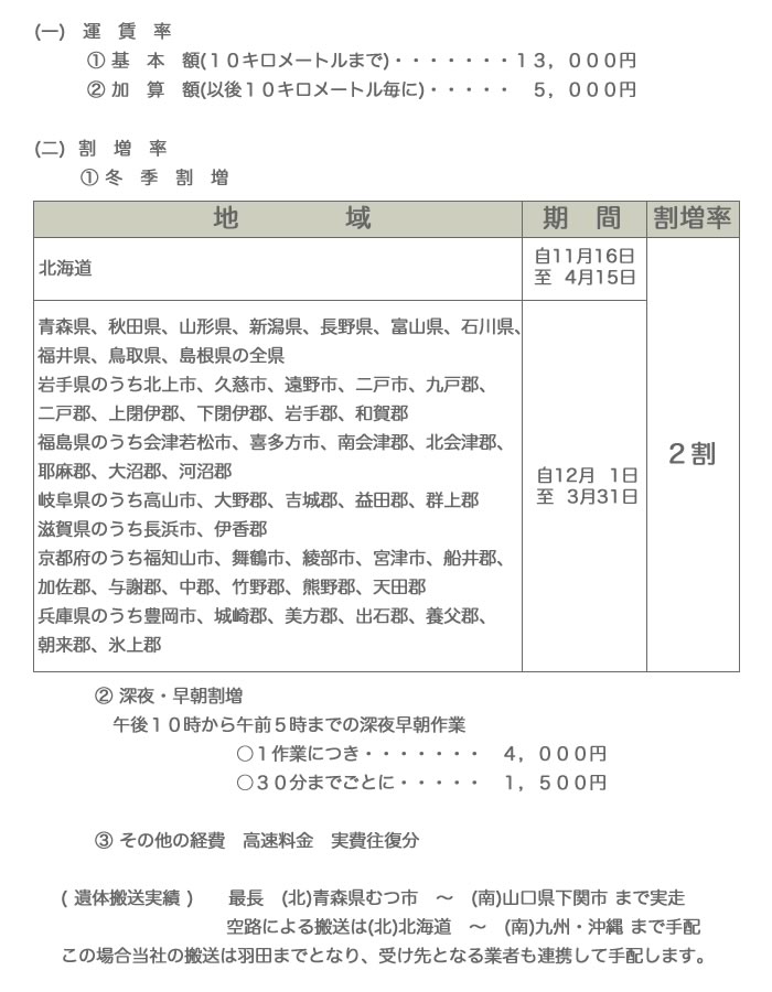 ご遺体の搬送は、一般貨物自動車運送事業です。
